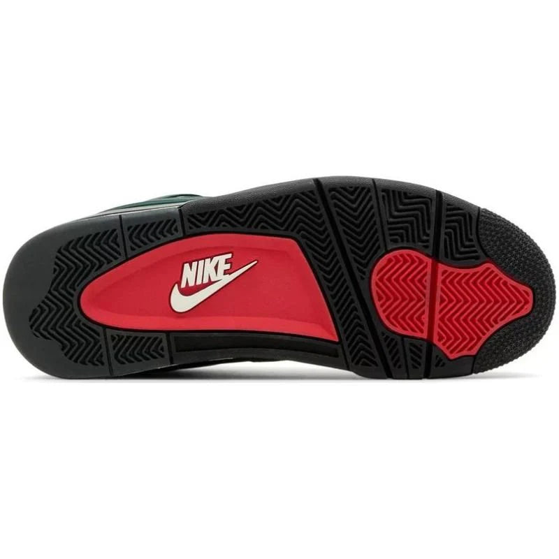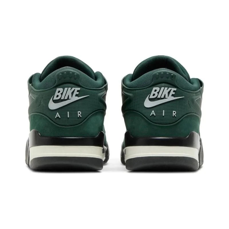 The Nigel Sylvester x Air Jordan 4 RM SP 'Grandma's Driveway - Fence Green' debuts the BMX star's refreshed take on Michael Jordan's fourth signature model. A dark emerald hue suffuses the upper, crafted from suede with a supportive TPU cage. A white mini-Swoosh is embroidered on the lateral forefoot, while 'Bike Air by Jordan' is inscribed on the tongue. An embossed Bike Air logo decorates the back heel. The sneaker sits atop a two-tone AJ4 midsole, finished in black and off-white tones and augmented with visible Air-sole cushioning.