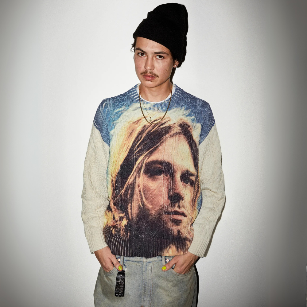Pay homage to the legendary Nirvana frontman with Supreme’s Kurt Cobain Sweater from the Spring/Summer 2023 (SS23) collection. This standout piece features an eye-catching graphic of Kurt Cobain on the front, making it a must-have for music lovers and Supreme enthusiasts.