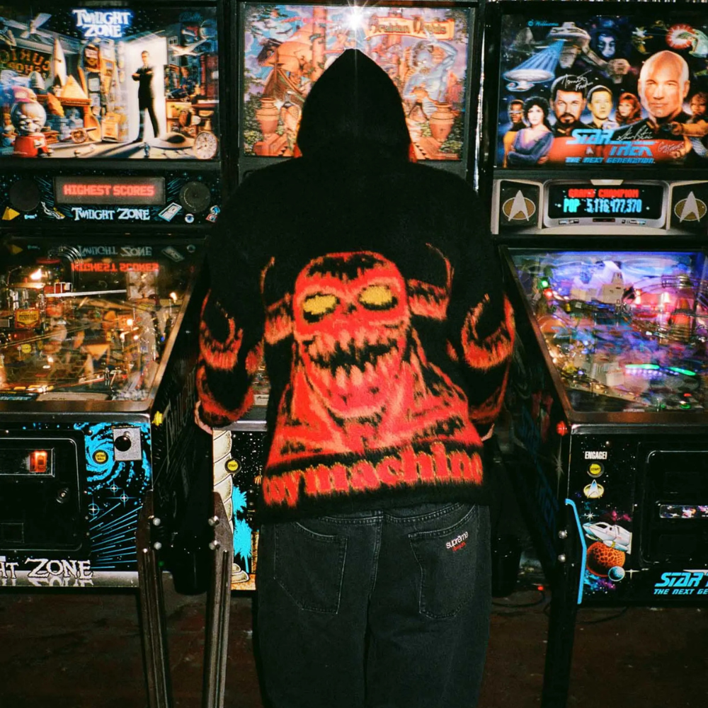 - Bold Graphics: Jacquard knit graphics featuring Toy Machine’s signature red devil motif across the front, sleeves, and back.