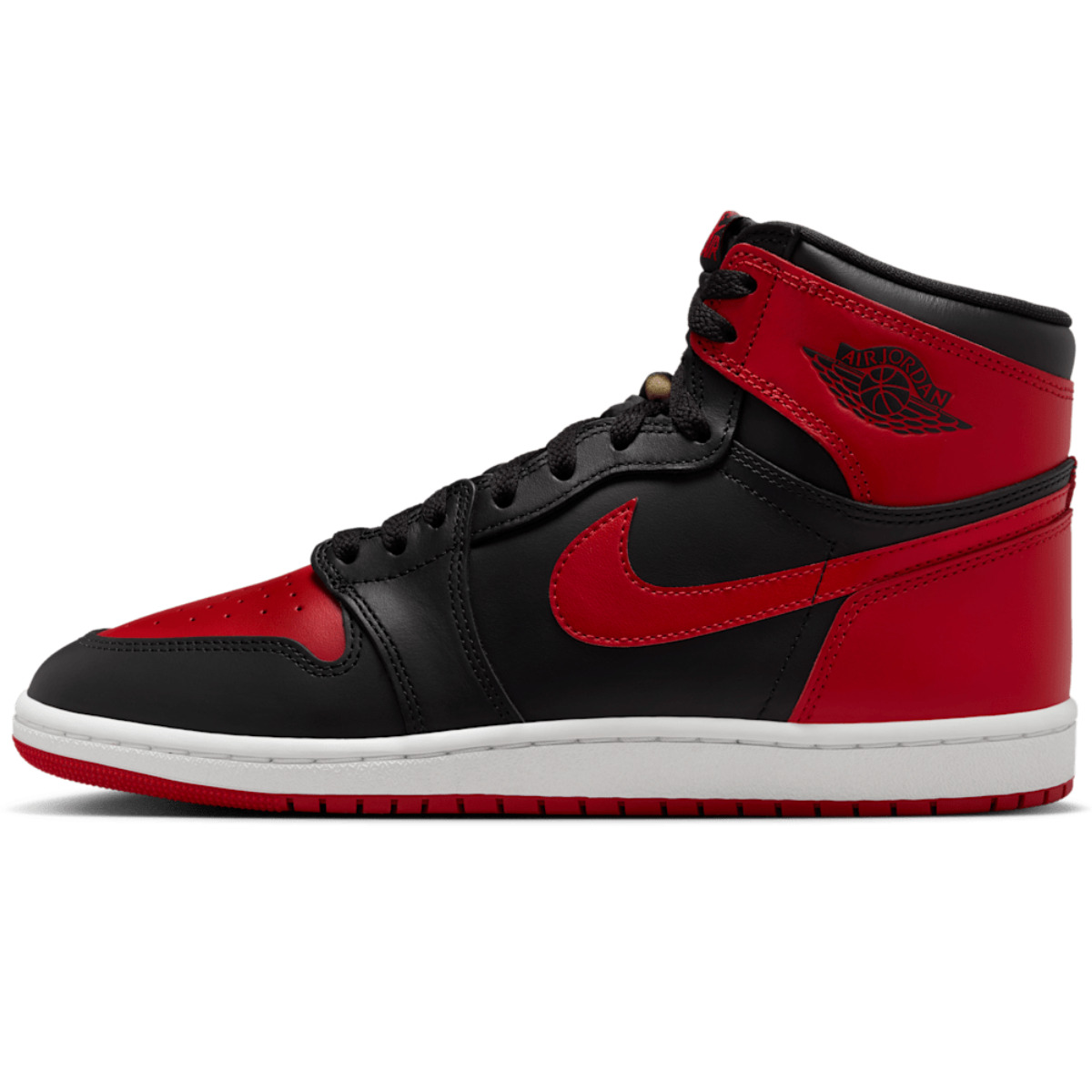 The Air Jordan 1 Retro High '85 OG Bred (2025) brings back one of the most iconic colorways in sneaker history. Originally launched in 1985 and famously "banned" by the NBA, this black and varsity red design has come to symbolize rebellion and style. For its 40th anniversary, Jordan Brand delivers a meticulously designed updated edition that is a return to the styling of the original with premium leather construction and its unmistakable color blocking.
