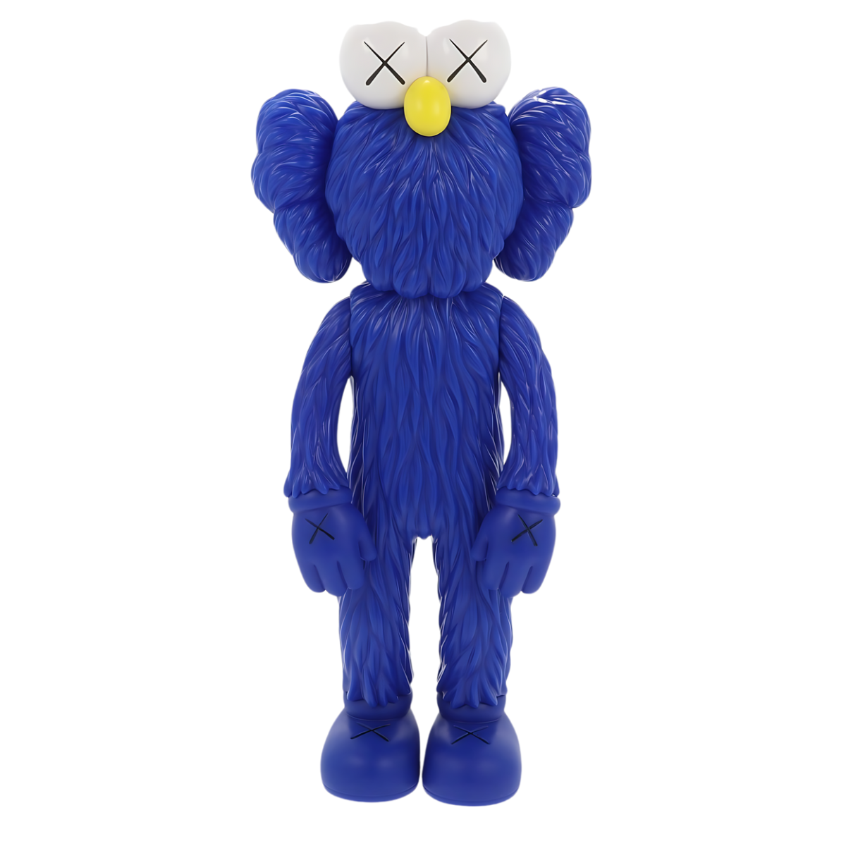 Over a year after the BFF character was revealed at the Central Embassy in Bangkok, Thailand, rumors started to swirl that KAWS would be releasing a 13-inch vinyl edition of the much loved character. Sure enough, this BFF Vinyl Open Edition in Black released in October, 2017. This blue version was available exclusively through KAWSONE, and features and all-blue body with a contrasting yellow nose and white eyes. One of the larger vinyl editions that KAWS has released, this BFF makes a great display piece for any living space.
