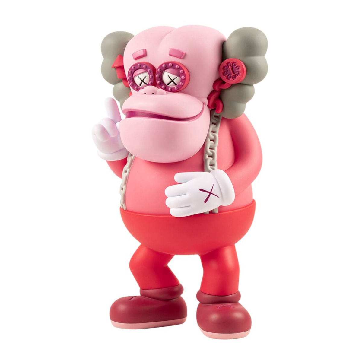 KAWS: MONSTERS Franken Berry Vinyl Figure, a stunning piece from KAWS' ultra-popular MONSTERS series. Originally teased in 2022 as part of KAWS' collaboration with General Mills, this figure reimagines the iconic Franken Berry cereal mascot with KAWS’ signature artistic elements, including the unmistakable crossed-out eyes and redefined proportions.