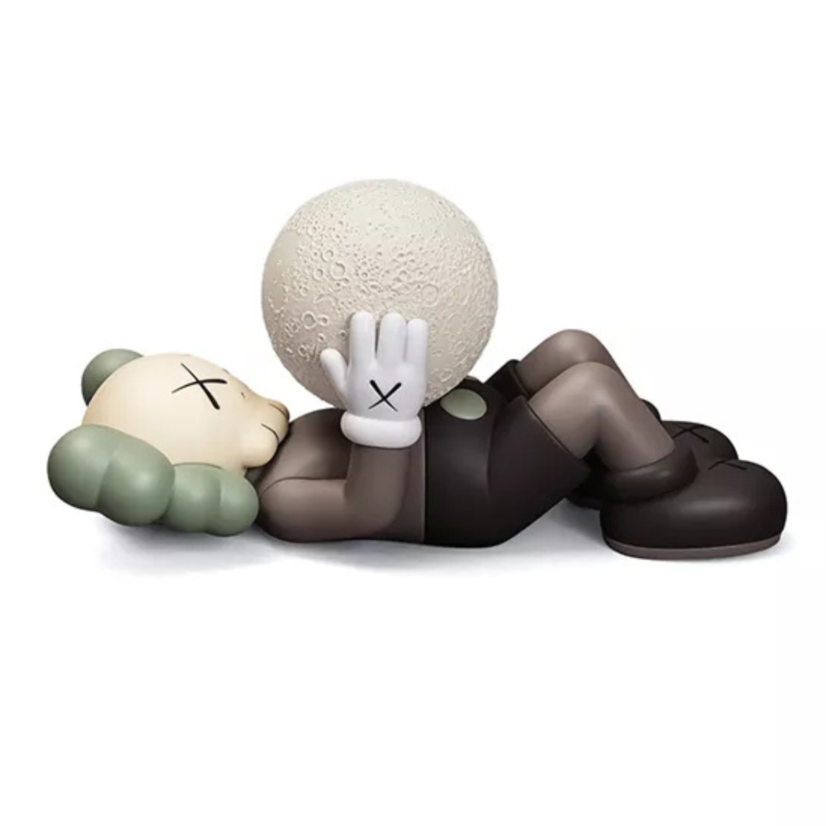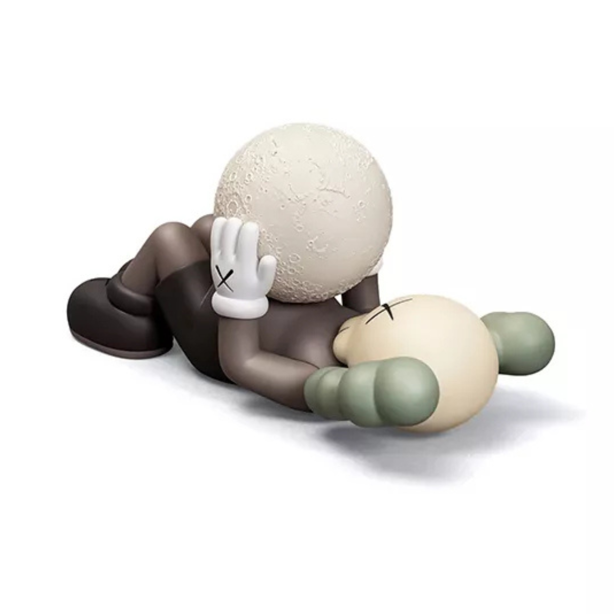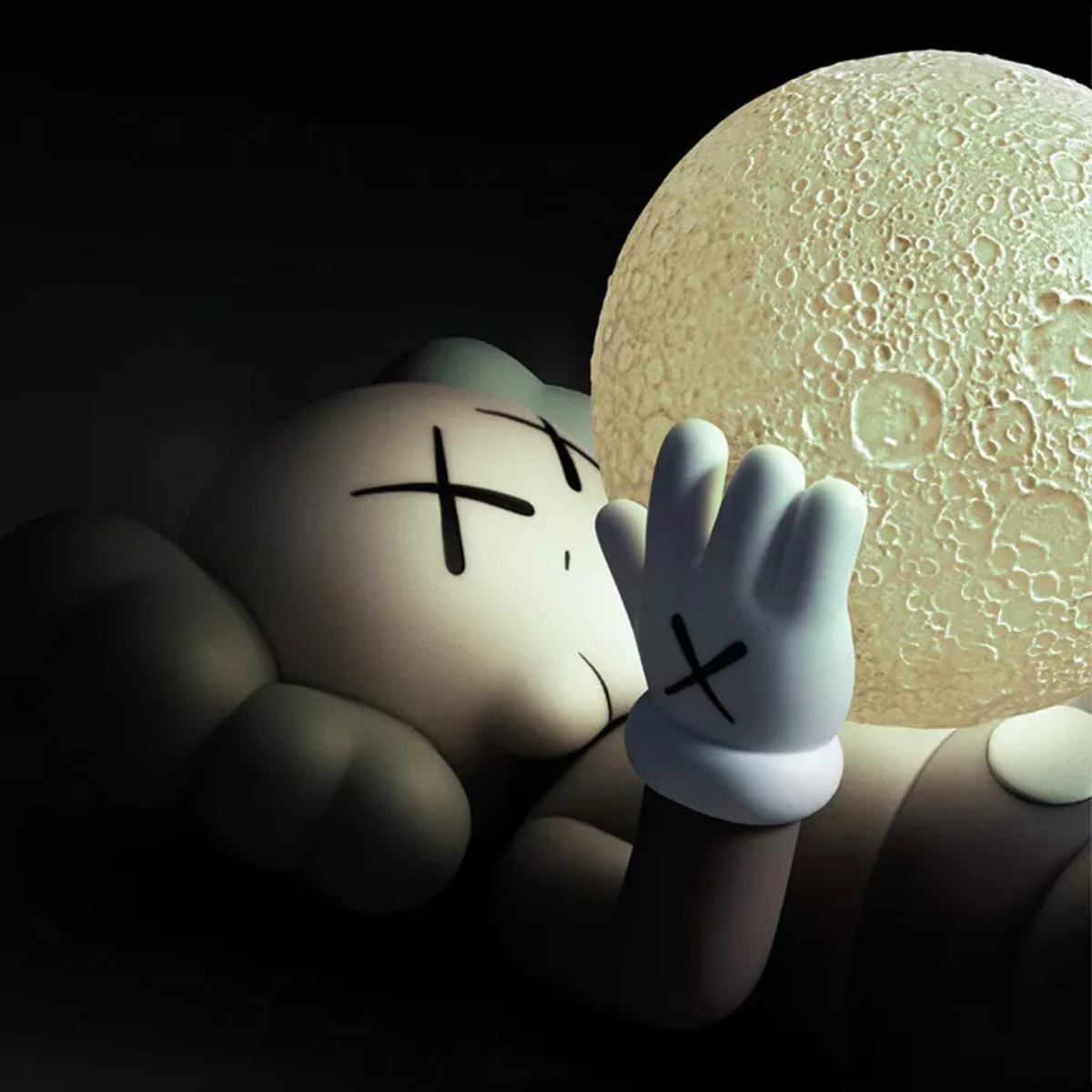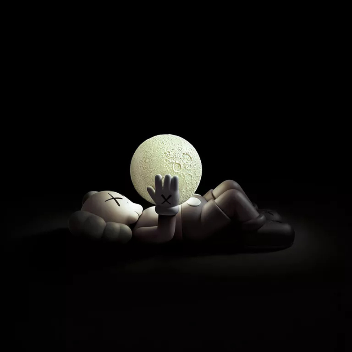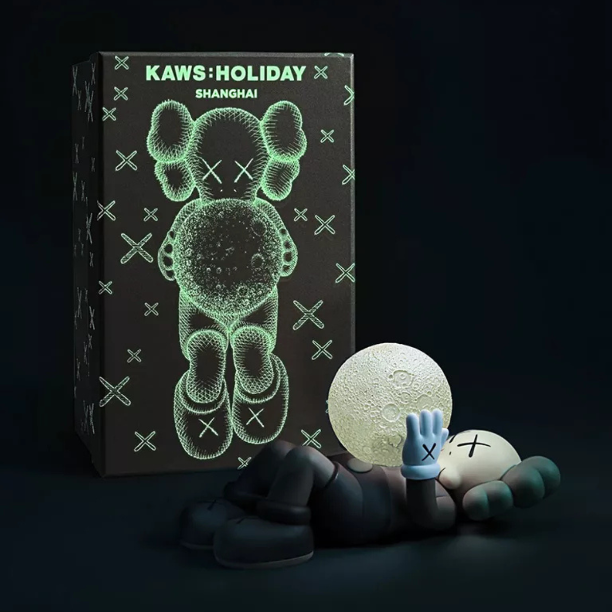 Introducing the KAWS: HOLIDAY Shanghai Vinyl Figure, a limited-edition collectible commemorating the artist's 2024 Shanghai exhibition. This figure showcases the iconic COMPANION character in a serene, reclining pose, holding a luminous moon—a tribute to the Mid-Autumn Festival's themes of reunion and moon gazing.
