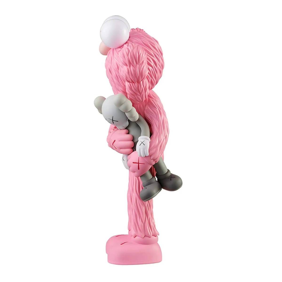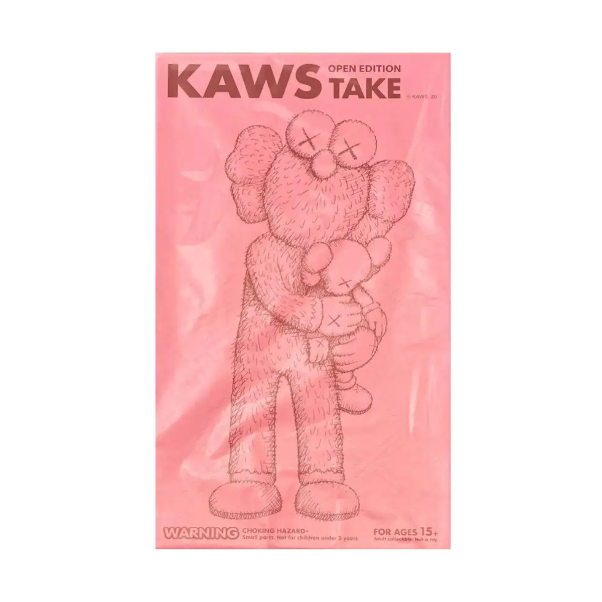This open edition sculpture / collectible vinyl toy by KAWS (Brian Donnelly) titled 'Take' was released in 2020 and comes in Black/Black, Blue/Brown, and Pink/Grey editions.