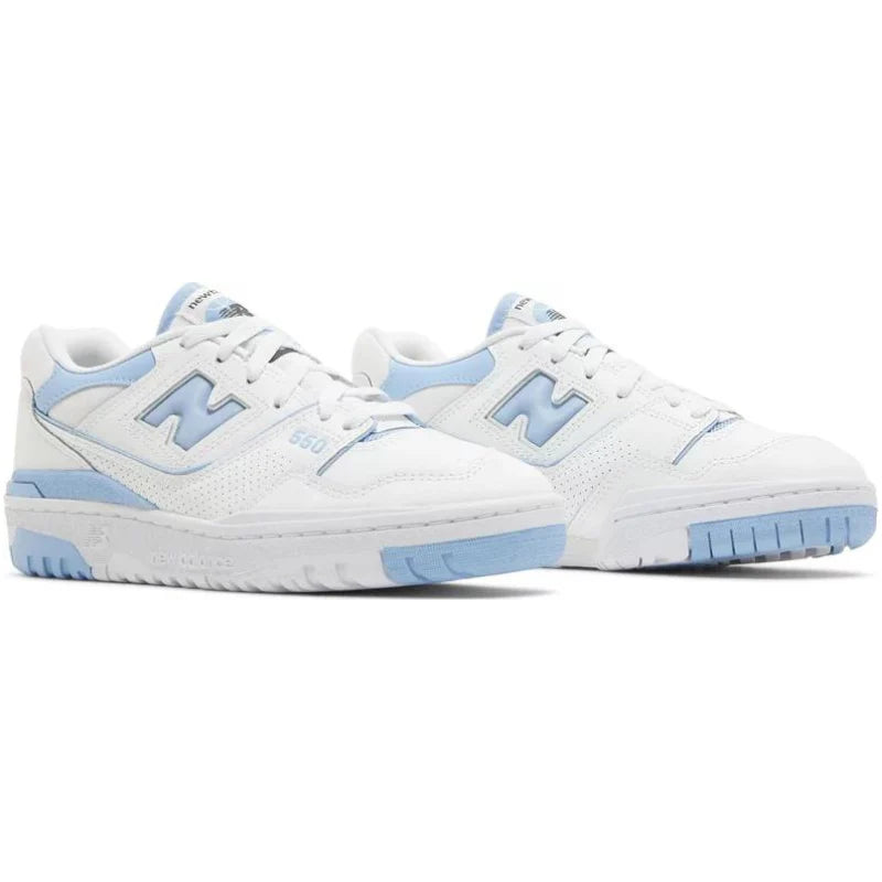 The New Balance women’s 550 ‘Silver Birch’ brings an understated two-tone palette to the late ‘80s basketball shoe. The low-top carries a white leather upper with a light tan ‘N’ logo on the quarter panel and microperforated detailing on the midfoot overlay. A padded textile collar combines with a breathable nylon tongue to deliver a comfortable fit. Anchoring the sneaker is a traditional rubber cupsole, featuring an exposed EVA wedge at the medial sidewall.