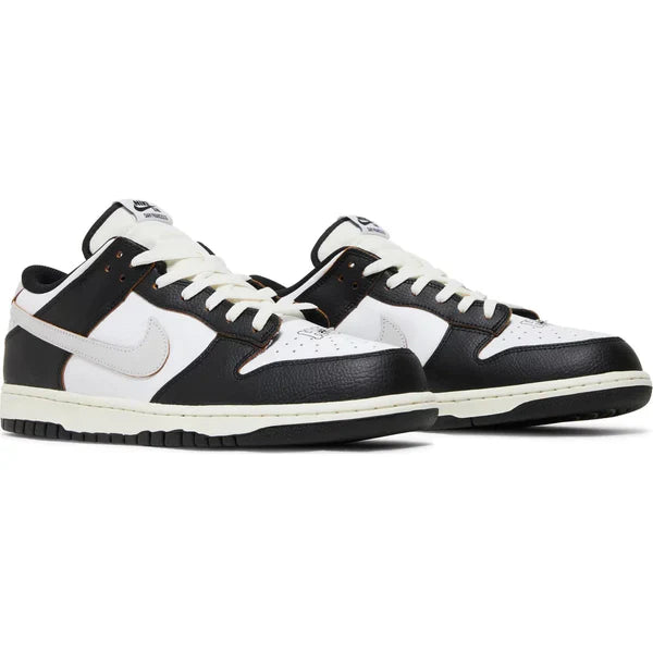 In celebrating the streetwear label’s 20th anniversary, the HUF x Nike Dunk Low SB ‘San Francisco’ pays homage to the city that Keith Hufnagel called home during his eponymous brand’s founding years. The late professional skateboarder started HUF with a single retail store in San Francisco, and the SF Giants serve as the inspiration for this shoe’s design, featuring a tumbled leather upper in black and white. Unique branding hits include the HUF logo — along with a jeweled mini-Swoosh — stamped on the toe box, an etched skyline graphic on the back heel, and ‘Keith Forever’ embroidered in the Giants’ black and orange font across the heel tabs. Inside the shoe, lime green sockliners display mismatched Nike SB and HUF insignias. A hidden detail is saved for the quarter panel, where a canvas tie-dye print inspired by HUF’s 2004 Dunk High collaboration is revealed by slicing away the leather exterior.