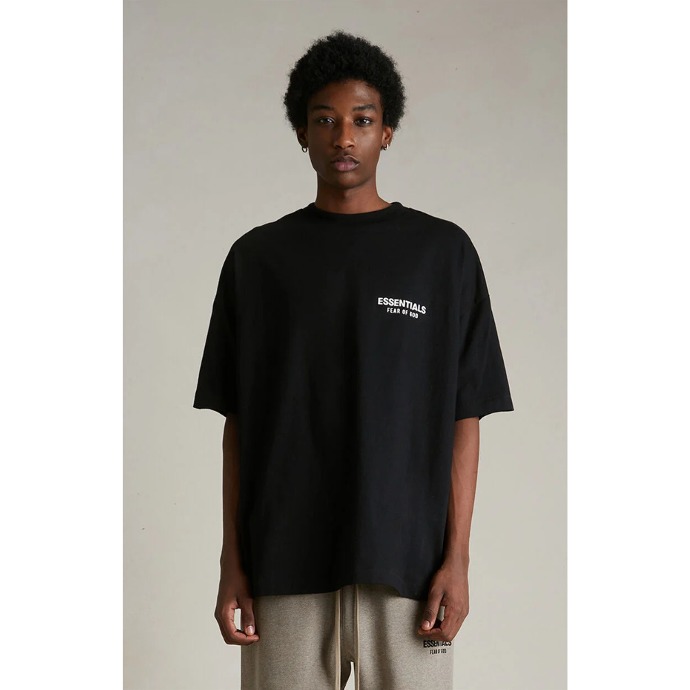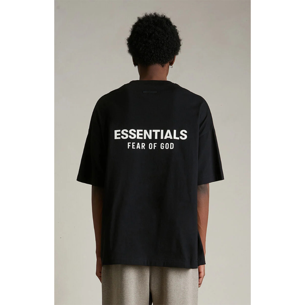 - "Essentials Fear of God" soft-touch logo on chest and back