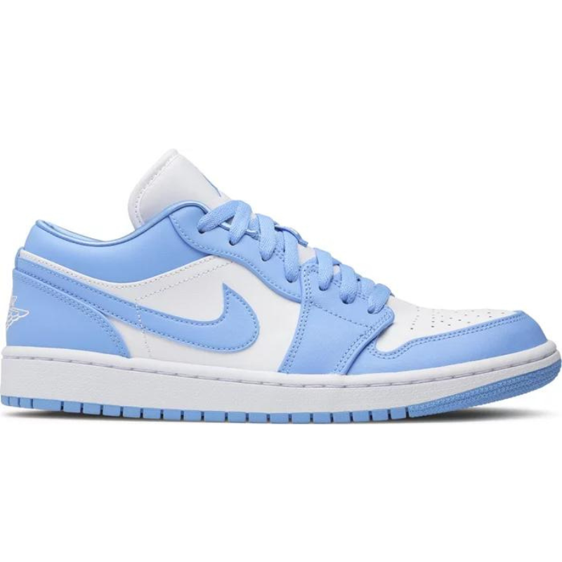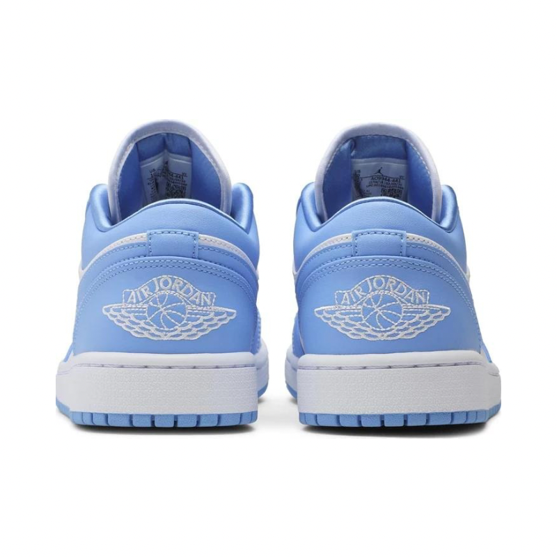 The Air Jordan 1 Low ‘UNC’ features a simple two-tone color scheme that pays homage to Michael Jordan’s alma mater. The all-leather upper applies University Blue overlays on a crisp white base, complete with a padded collar for a comfortable fit and perforated detailing on the toe box for added breathability. Branding elements include a Jumpman atop the tongue and the Jordan Wings logo embroidered on the heel panel.