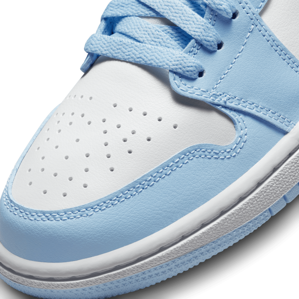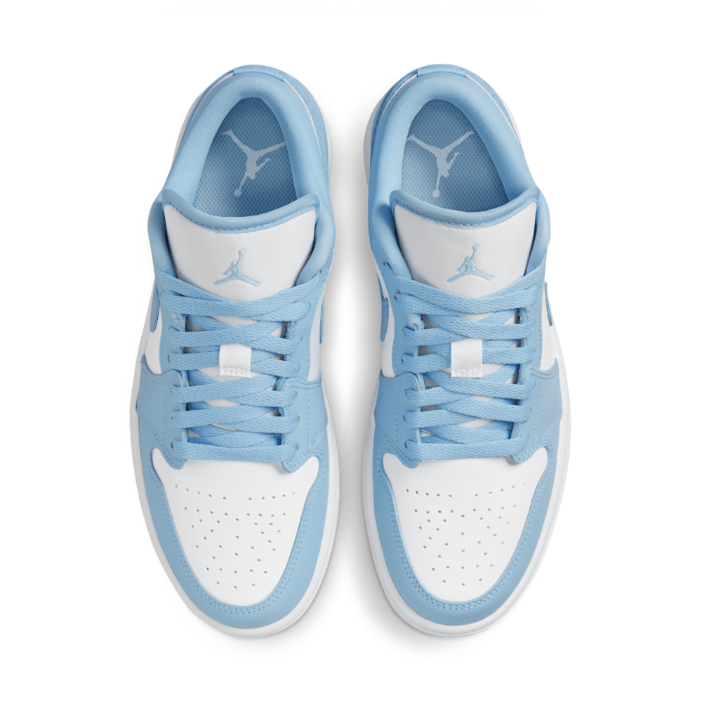 Exclusive to women, the newly-surfaced pair resembles a Nike Dunk Low at quick glance. Closer inspection, however, reveals that the shoe is part of Michael Jordan’s eponymous imprint. Jumpman branding appears on the top of the tongue, while lower heel sections feature embroidered “Wings” insignias created in 1985. Light, sky-reminiscent blue, then, animates overlays around the forefoot, along the tongue and across the heel, as well as the oft-imitated traction pattern underfoot.