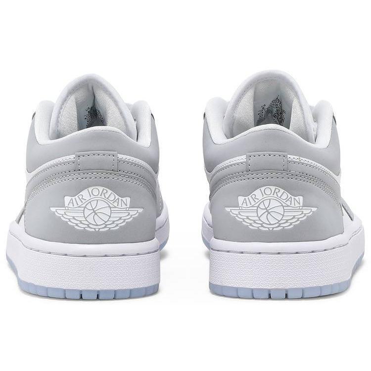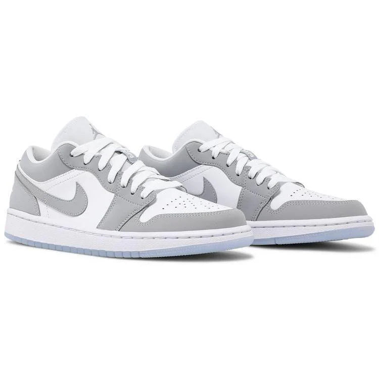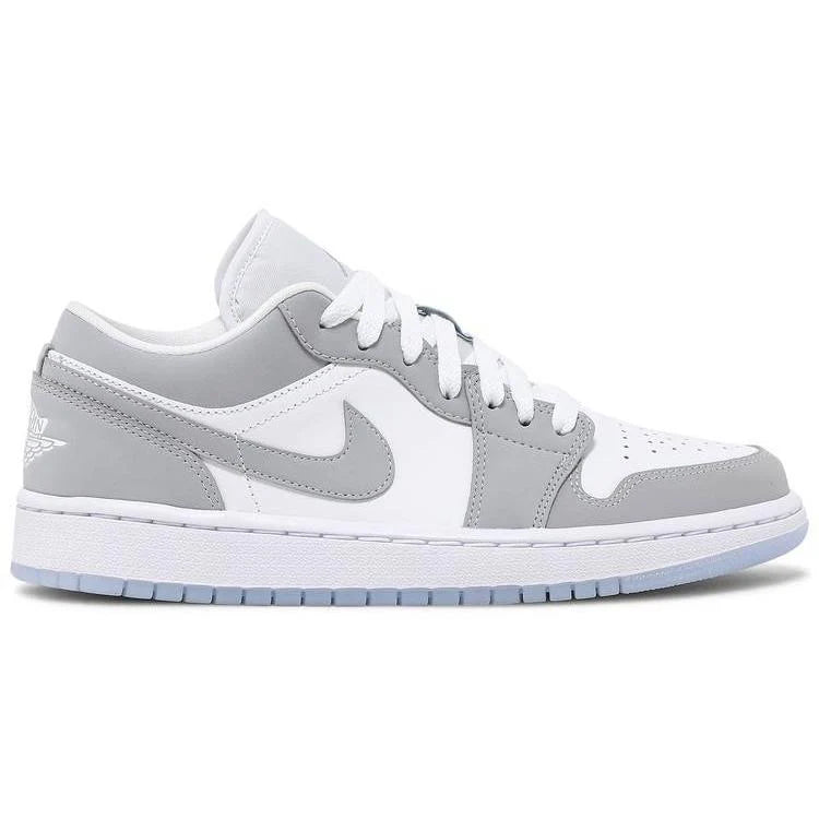 The Women’s Air Jordan 1 Low ‘White Wolf Grey’ brings neutral two-tone color blocking to a timeless silhouette modeled after the 1985 original. The all-leather upper combines a white foundation with light grey overlays and a color-matched Swoosh. A silver Jumpman is embroidered on the tongue, while a retro Wings logo is imprinted on the back heel. The sneaker rides on a white rubber midsole, enhanced with encapsulated Air-sole cushioning and supported by a translucent rubber outsole.