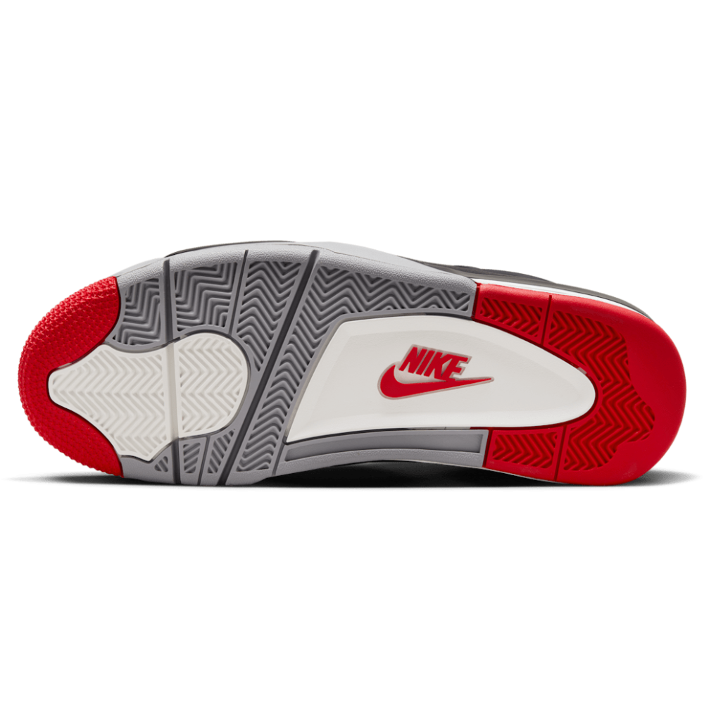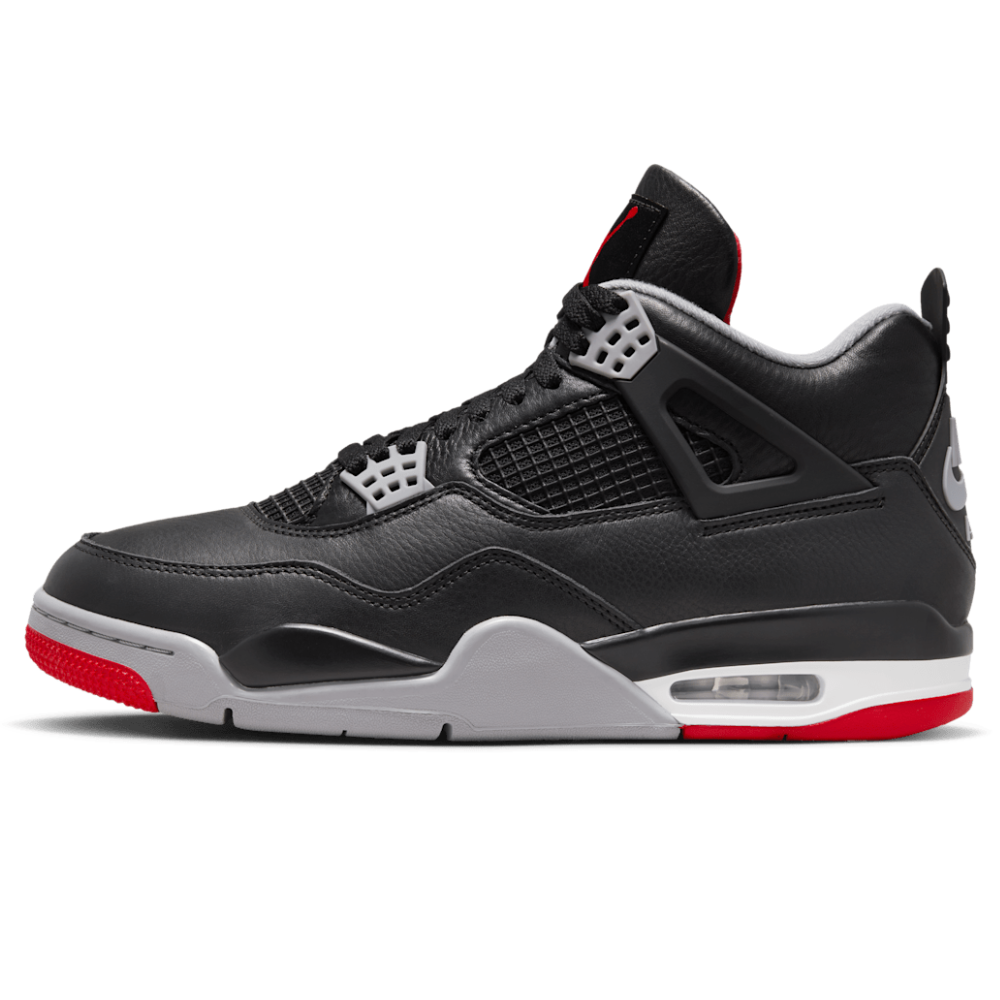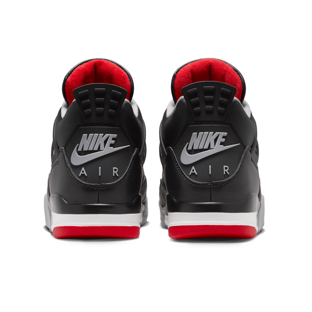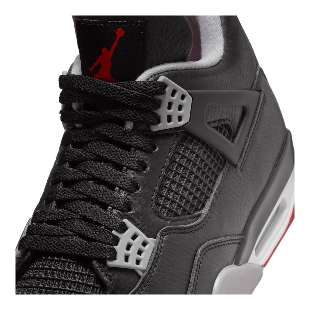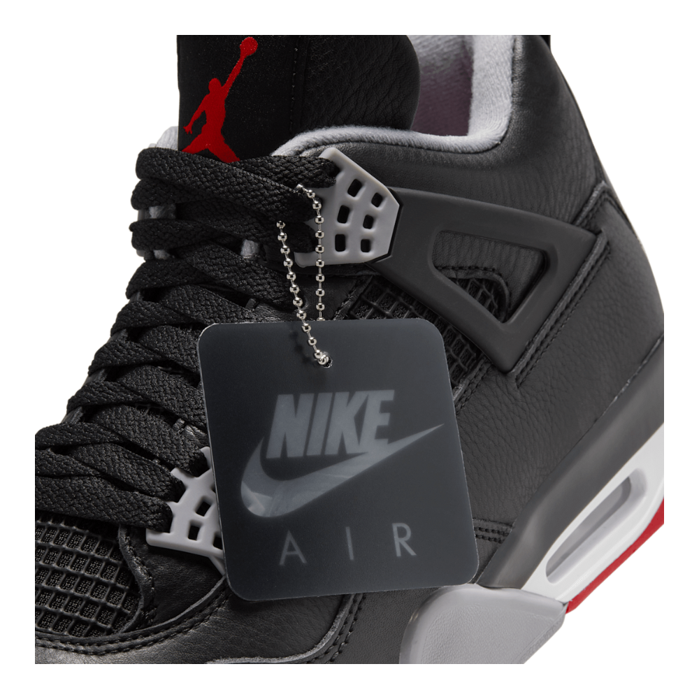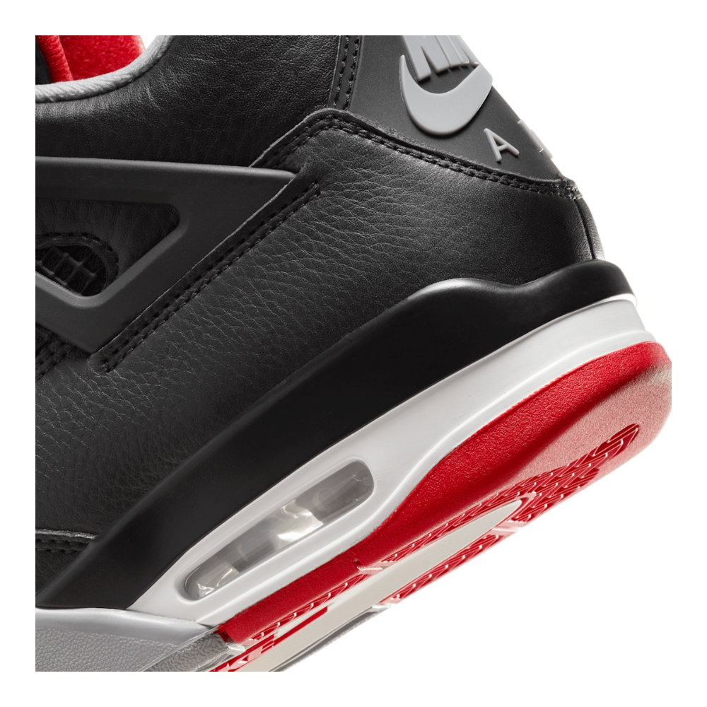 The Air Jordan 4 Retro ‘Bred Reimagined’ makes over the classic silhouette with a black leather upper, replacing the nubuck build of the original 1989 release. Heritage details include quarter panel netting, grey molded eyelets, and Nike Air branding on the heel tab. Atop the tongue, a woven Flight tag displays a crimson Jumpman logo. The mid-top is mounted on a lightweight polyurethane midsole, fitted with encapsulated Air-sole cushioning in the forefoot and an exposed Air unit in the heel. Underfoot, a pre-distressed rubber outsole features a herringbone traction pattern for superior grip.