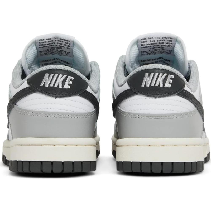 Equipped with a full leather construction on the upper, this Nike Dunk Low starts off with White on the base which is then joined by the highlight Light Smoke Grey on the overlays and Black on the Swooshes, heel tabs, and laces. Grey embroidered branding on the heels, Sail rubber midsoles, and Black rubber outsoles finish off this Nike Dunk Low
