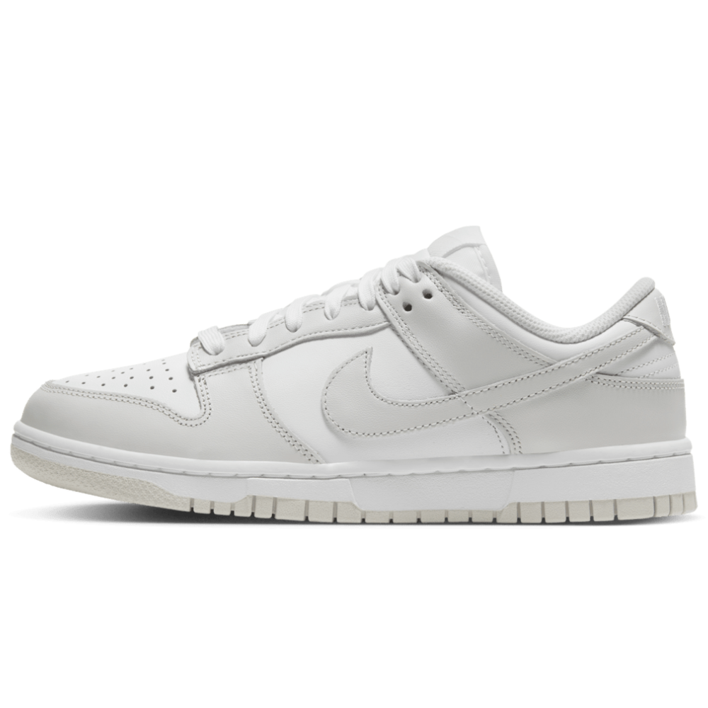 The Nike women’s Dunk Low ‘Photon Dust’ delivers an understated colorway of the performance hoops shoe turned streetwear staple. The low-top carries an all-leather upper finished entirely in neutral white and grey tones. An OG aesthetic is accentuated via traditional branding elements, including a woven Nike tongue tag and embroidered Nike lettering on the heel tab. Underfoot, the rubber outsole features a traction pattern that’s nearly identical to another 1985 release, the Air Jordan 1.