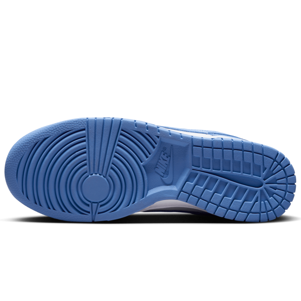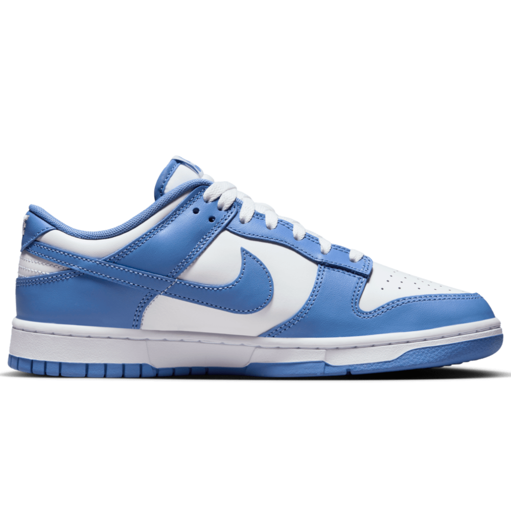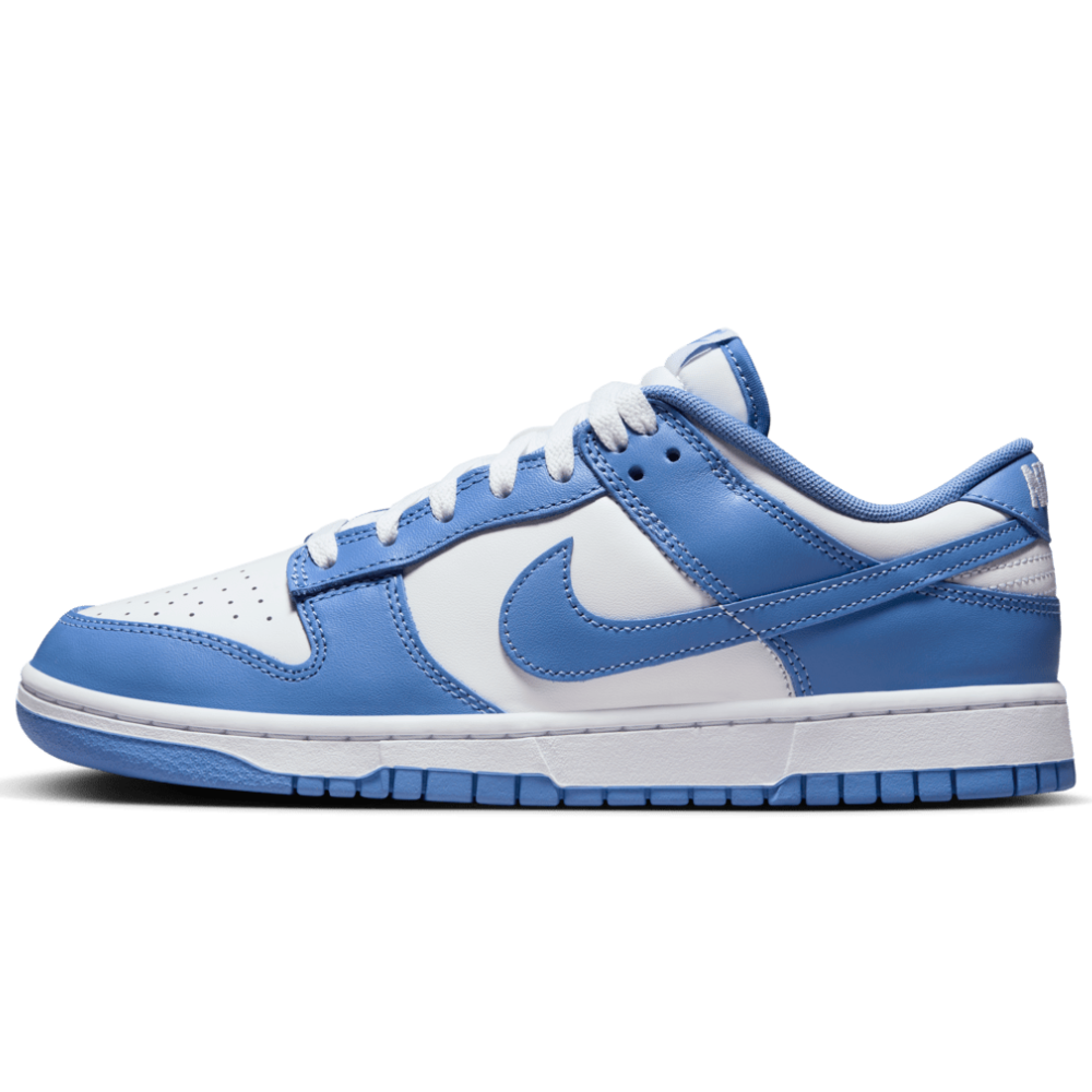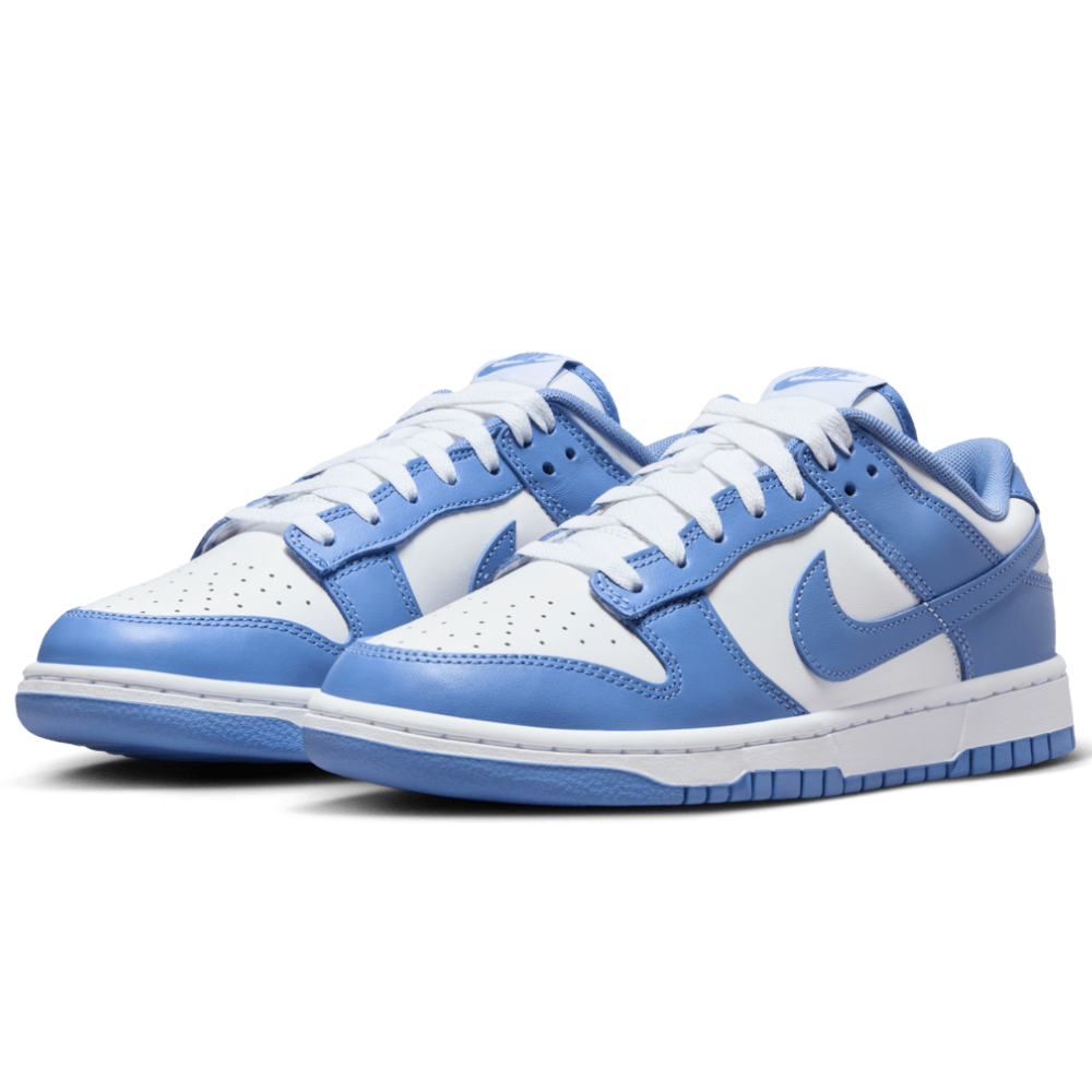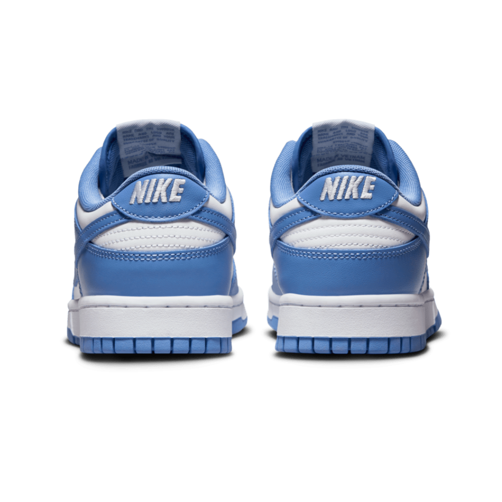 The Nike Dunk Low ‘Polar Blue’ features a crisp white base with steel blue overlays and a color-matched Swoosh. Heritage details include breathable perforations on the toe box and a breathable nylon tongue, topped with a woven Nike tag. Additional Nike branding appears on the back tab and sockliner. Reflecting the shoe’s ‘80s roots is a durable rubber cupsole, fitted with an interior polyurethane wedge for lightweight cushioning.