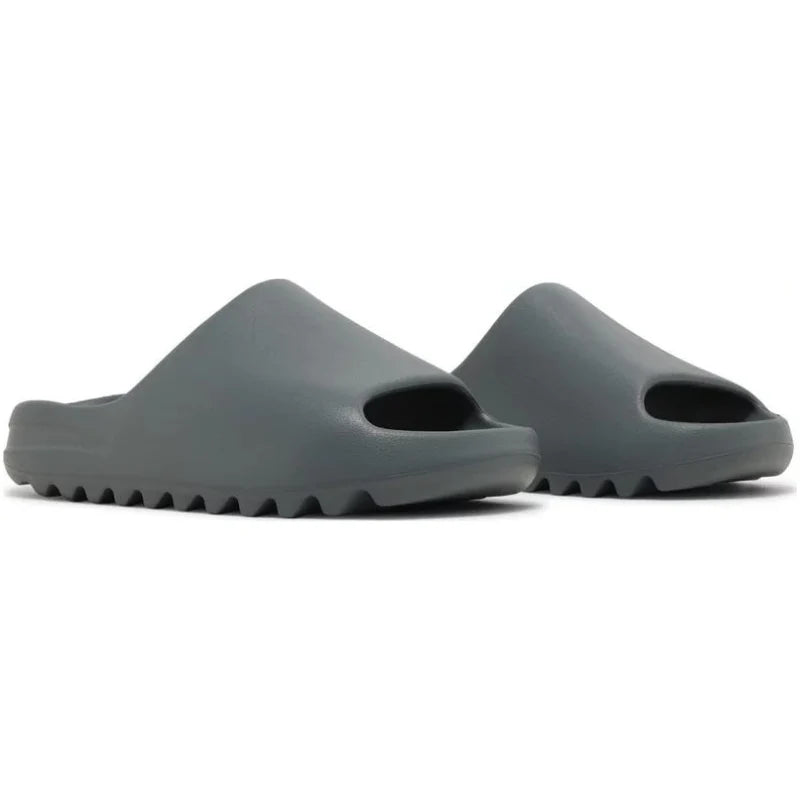The adidas Yeezy Slide ‘Slate Marine’ pairs a minimalist design with a tonal finish in a subdued shade of blue. Built with a single piece of injected EVA foam, the slip-on boasts a wide strap upper that entirely covers the top of the foot. Exterior branding is limited to adidas’ three stripes logo, debossed on the soft top lay of the footbed. Underfoot, the outsole features a series of horizontal grooves for improved cushioning and traction.